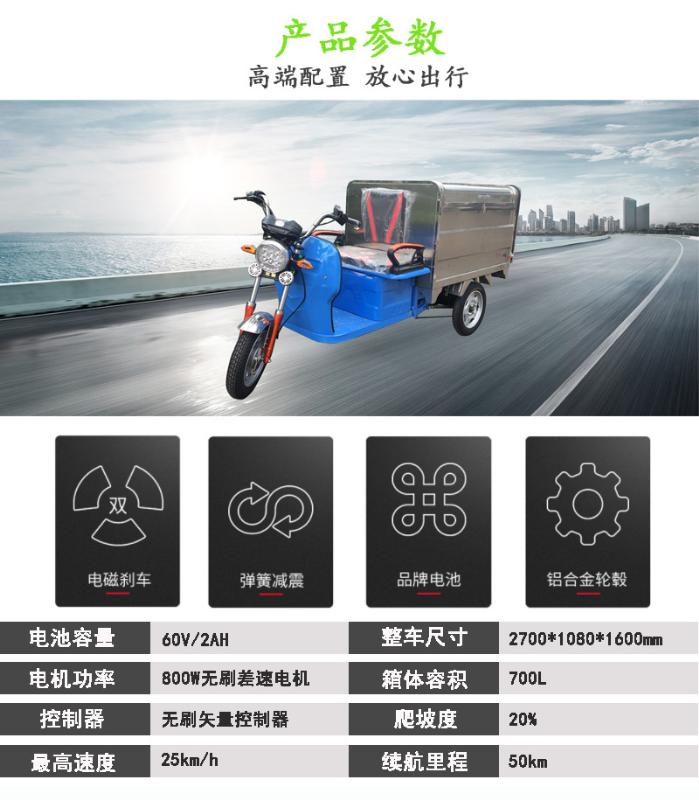 產(chǎn)品簡(jiǎn)介:型號:華保3系-3 QY3-3;電池:60V/20A電機:800W整車(chē)尺寸:2700*1080*1600mm箱體容積:700L