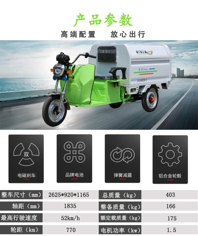 產(chǎn)品簡(jiǎn)介:車(chē)架、后泥瓦、座桶及箱體均采用酸洗磷化電溶烤漆工藝,車(chē)架及箱體顏色為環(huán)保綠,確保五年不褪色、生銹,美觀(guān)大方。前叉采用太子式液壓減震。腳剎手剎兼備,手剎同時(shí)具有鎖死功能,可在不同路面隨時(shí)駐車(chē)。
