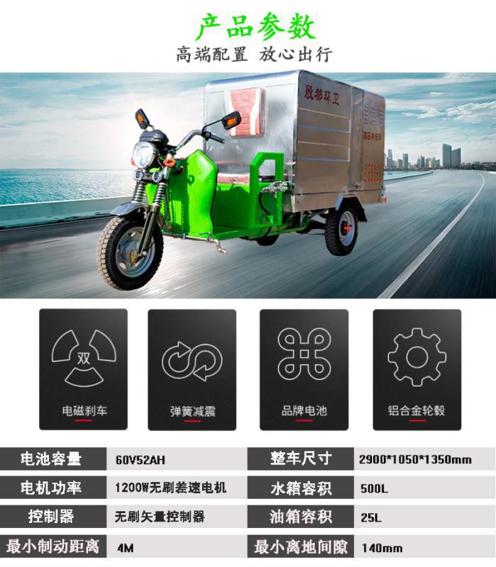 車(chē)架:電動(dòng)三輪高壓沖洗車(chē)專(zhuān)用車(chē)架,帶坐桶護欄和后保險桿,防止電池組和車(chē)身撞擊受損;