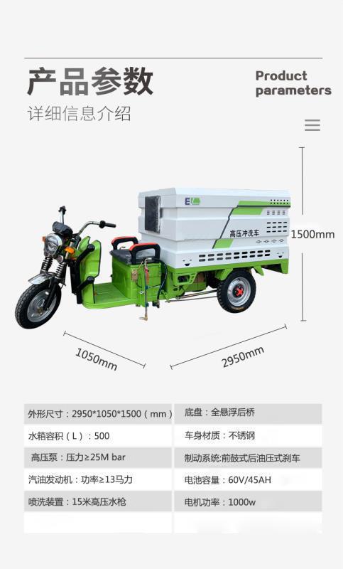 產(chǎn)品簡(jiǎn)介:QX500-1;整車(chē)尺寸:2950*1050*1500mm,水箱容積:500L;電機功率:1000w,自帶15米高壓水槍